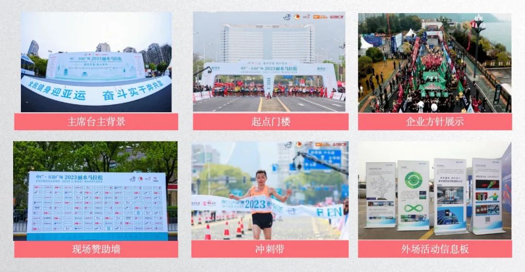2024中广·未来城丽水马拉松提供多样的赛事赞助方案,根据品牌的不同需求和预算,提供相应的赛事宣传推广、品牌曝光等回报措施。赛事当天,赞助企业品牌将得到最大程度的曝光展示,通过现场整体物料、赛道氛围点,加油站点、企业方阵、终点展位互动等多种形式,借助赛事平台,实现企业品牌的全方位宣传推广。