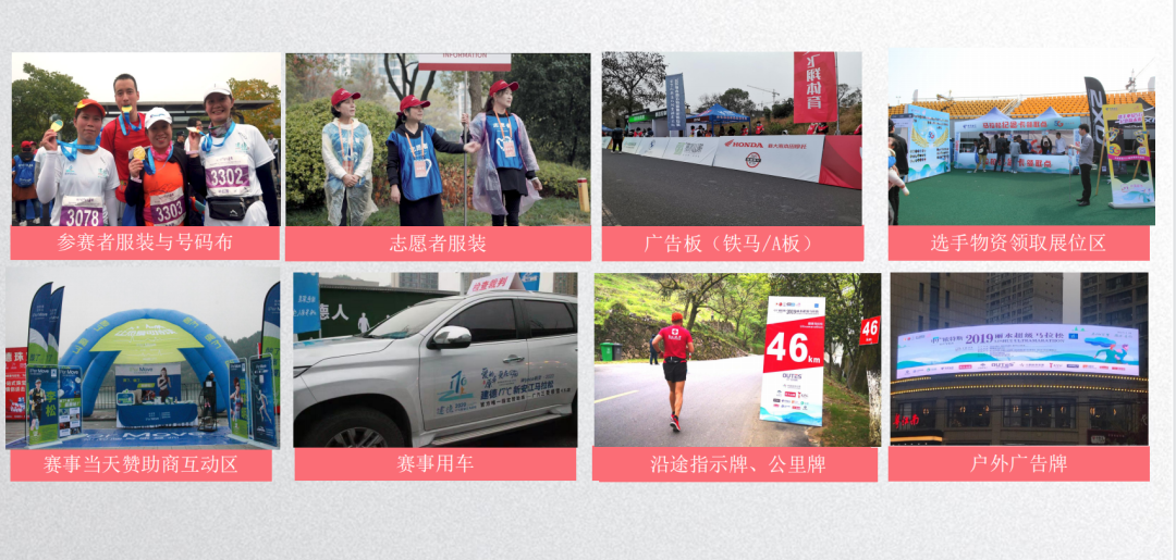 赛道全程50公里,企业单独展示或集群性展示,吸引跑者和市民眼球。依据合作级别分配资源数量,为企业单独展示物料。