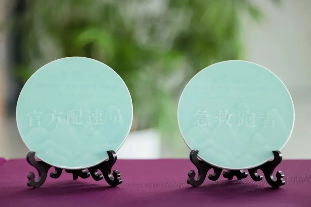 于是,在今年丽马赛前,大唐(龙泉)青瓷与组委会积极对接,希望承担本次赛事活动的奖牌设计与制作。最终与组委会一拍即合,打破传统马拉松赛事奖牌材质的局限性,采用浅浮雕和阴刻相结合的雕刻技艺,以龙泉青瓷呈现出本次丽水马拉松组别具一格的马拉松组奖牌,充分展现丽水特色,打造独一无二的丽马风采。