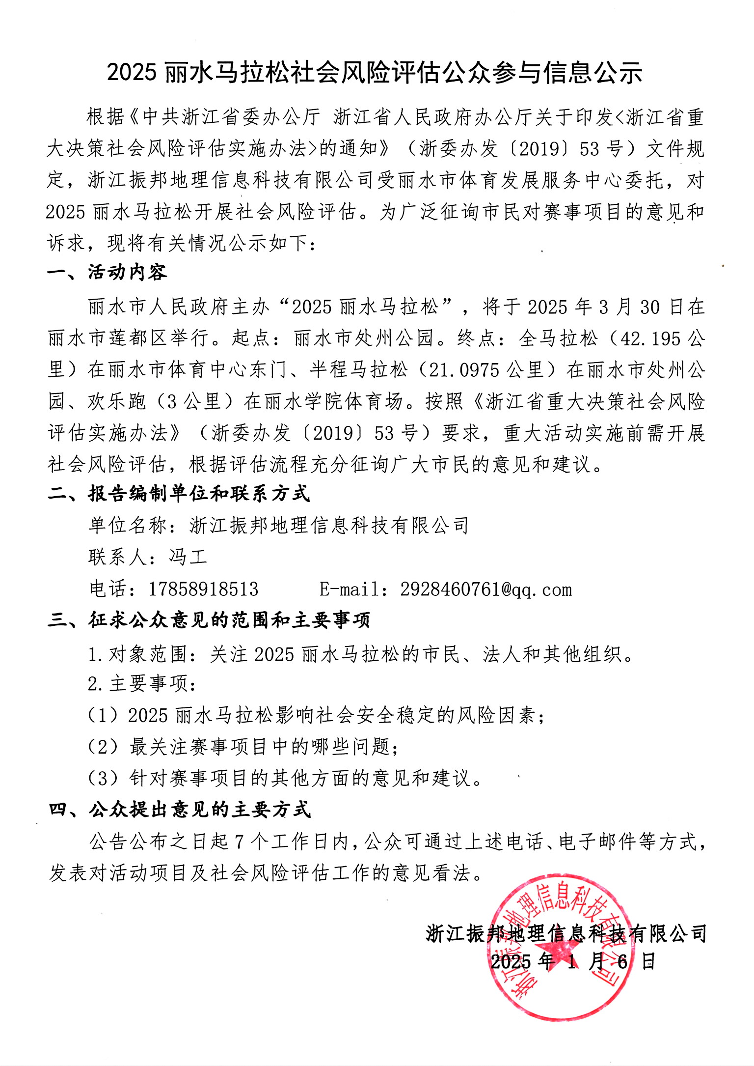 2025丽水马拉松社会风险评估公众参与信息公示